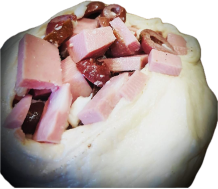 Prosciutto cotto pomodoro e mozzarella e philadelphia, salame piccante pomodoro e mozzarella, spinaci prosciutto cotto e mozzarella, melanzane parmigiano pomodoro e mozzarella, porchetta con emmental, funghi, ciliegino pomodoro e mozzarella, mortadella mozzarella philadelphia e pistacchio.